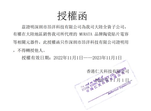 昂洋科技是以下品牌的一级代理:TDK,MURATA村田、三星SAMSUNG、国巨yageo、风华高科等知名品牌代理商。昂洋作为muRata村田原厂授权的一级代理商,是深圳村田电容的一级代理商。原厂现货直销:贴片电容、贴片电阻等全系列产品。