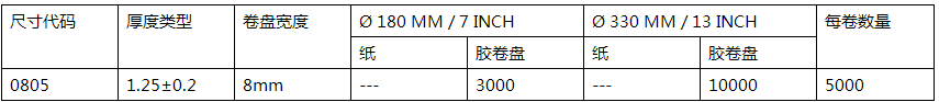 | 0805 | 2.0±0.20 | 1.25±0.20 | 1.25±0.20 | 0.25 | 0.75 | 0.55 |
