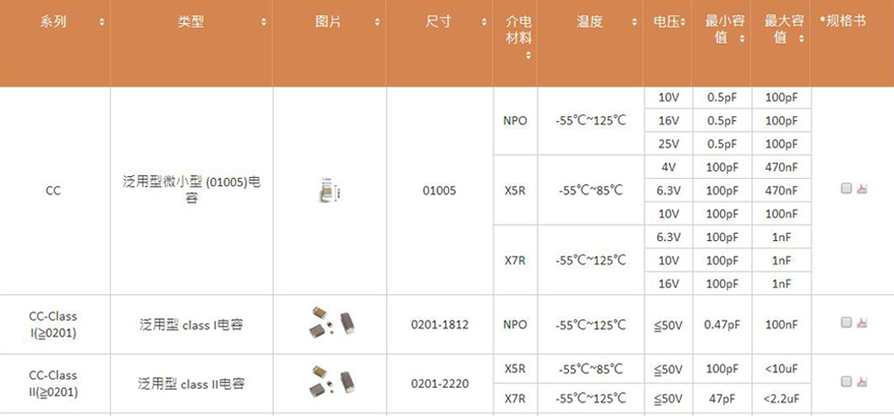 国巨电容常见封装尺寸有,0201,0402,0603,0805,1206,容量范围一般在0.5pF~1uF。
