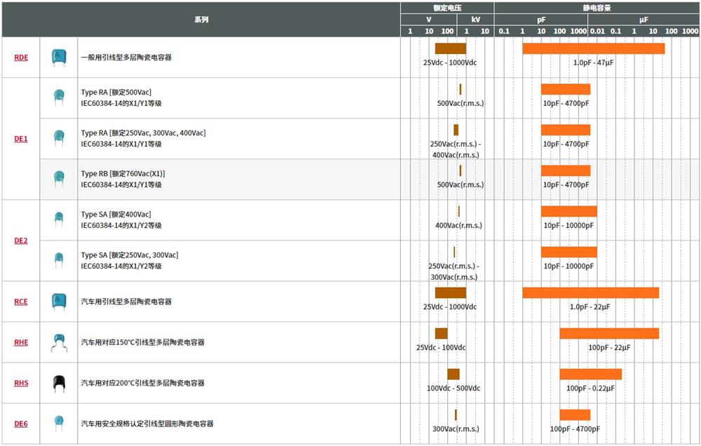村田电容器主要分为:陶瓷电容器 (引线型) 陶瓷电容器 (SMD)